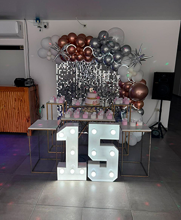En nuestro Salón podes festejar Fiestas Infantiles, cumpleaños, casamientos, 15 años, baby shower y mucho más. Nuestro equipo comprometido en hacer de cada celebración algo extraordinario, desde emocionantes juegos hasta una decoración encantadora, te garantizamos un día especial para tus seres queridos. Descubre nuestro especial sector de pileta con climatización solar y parrilla para que puedan disfrutar también al aire libre. ¡Bienvenido a la familia FLOB EVENTOS, donde la diversión y la magia se encuentran en cada rincón!