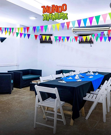 ¡Prepárense para una explosión de color, diversión y momentos inolvidables! En Mundo Aventura, creemos que celebrar es vivir una experiencia mágica, y nuestro salón está diseñado para hacerlo realidad. Te esperamos a vos y a todos tus invitados para jugar, saltar y divertinos. No dejes de consultar disponibilidad y reservar tú fecha con anticipación.